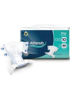 Attends Slip Air Comfort 10 est une culotte tout-en-un conçue pour gérer l'incontinence urinaire et/ou fécale sévère. Grâce à leur technologie avancée à canaux, elles offrent une absorption rapide, une sécheresse instantanée et une protection fiable contre les fuites.