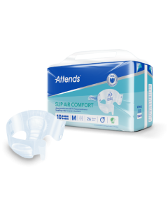 Attends Slip Regular est une gamme de changes complets avec attaches repositionnables pour un ajustement parfait, un confort et une protection contre les fuites pour des personnes à mobilité réduite ou dépendantes. Le voile micro-aéré de la protection ainsi que ses fibres ondulées qui garantissent un pH faible contribue au maintien d’une peau saine. La technologie Quick-Dry® favorise l’absorption rapide garantit un effet garde au sec. La protection est également dotée d’un indicateur d’humidité et neutralise les odeurs désagréables.